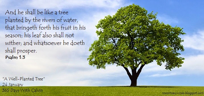The psalmist here uses a metaphor to confirm the statement he made in the preceding verse. He shows us how those who fear God are to be accounted happy, not because of an evanescent and empty gladness, but because of their desirable condition. These words imply a contrast between the vigor of a tree planted in a well-watered area, and the condition of one that flourishes beautifully for a time, yet soon withers because of the barrenness of the soil in which it is placed.